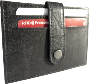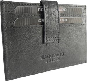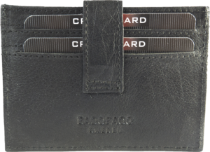 Pevné kožené pouzdro na karty a doklady z pravé buvolí kůže. Obsahuje 4 kapsy na karty, které jsou zajištěny koženým pásem, který zabraňuje vypadávání karet.