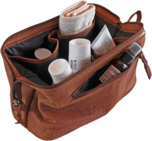 Tato toaletní taška v barvě Tan je stylový a spolehlivý doplněk, který se hodí ke každému zavazadlu.